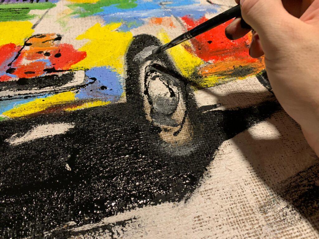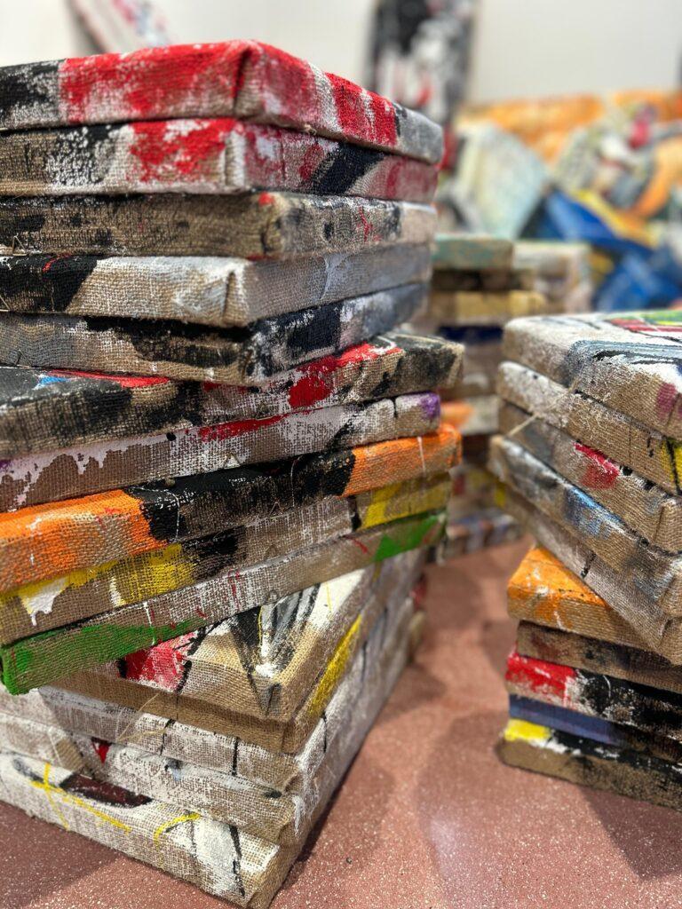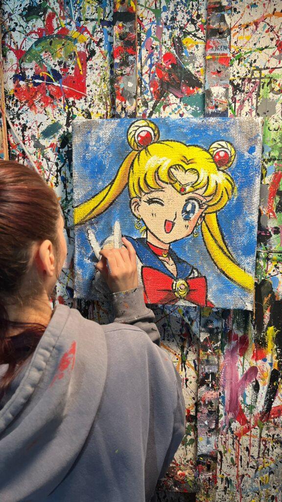 Abbiamo raccolto anche scatti dal nostro laboratorio artistico, momenti autentici in cui ci troverete al lavoro, mentre dipingiamo a mano ogni tela con cura e passione. È un modo per mostrarvi da vicino il nostro processo creativo, fatto di dettagli, ispirazioni, pennellate e materiali scelti con attenzione.