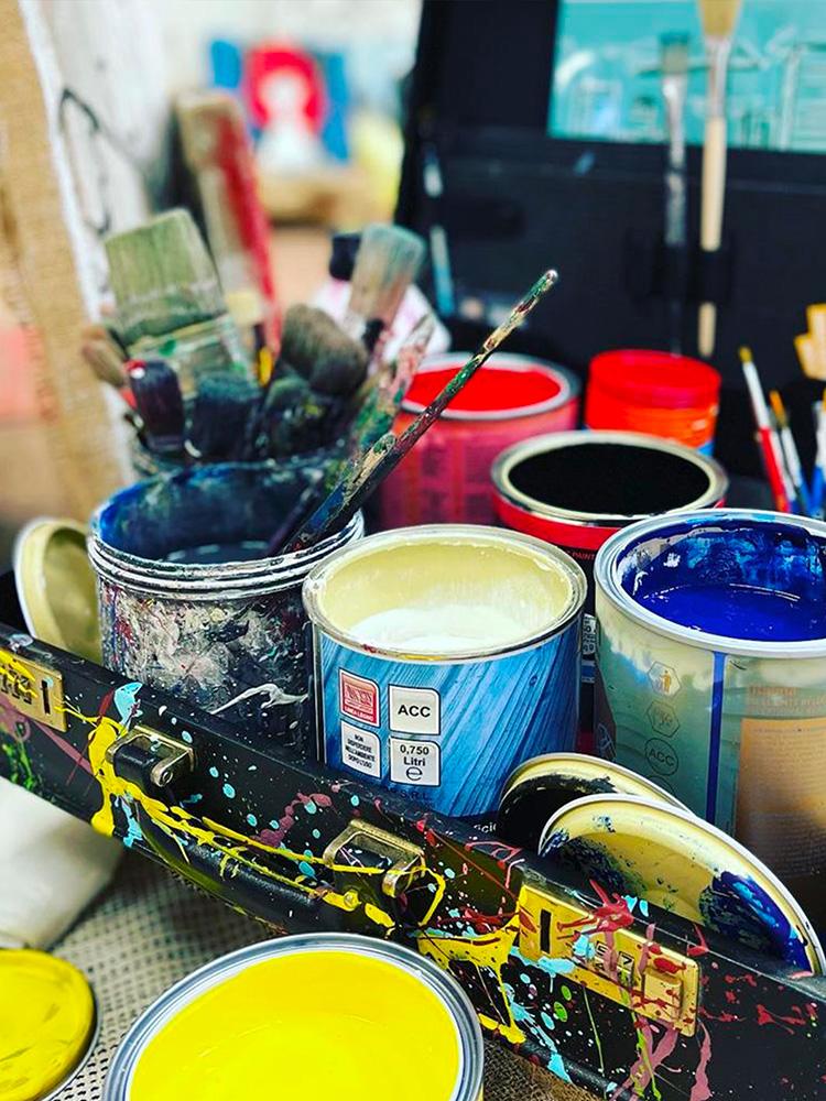 Per la realizzazione delle opere impieghiamo pittura acrilica professionale, scelta per la sua brillantezza, durata nel tempo e resa cromatica intensa.