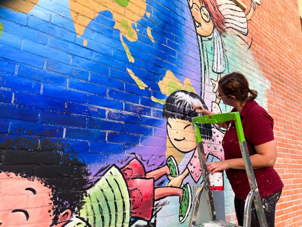Abbiamo realizzato un murales dedicato all’unione e alla fratellanza tra i popoli su una parete esterna, utilizzando ponteggi pneumatici e rispettando tutte le normative di sicurezza. Per garantire la durabilità, abbiamo scelto colori acrilici resistenti agli agenti atmosferici, e la progettazione è stata attentamente supervisionata e approvata dalla dirigenza dell’istituto. Durante il processo, abbiamo accolto alcune modifiche richieste dal commissionante, implementandole senza impatti sul budget iniziale. Questo progetto celebra l’amicizia e la collaborazione tra culture diverse, evidenziando il nostro impegno a realizzare la visione dei nostri clienti.