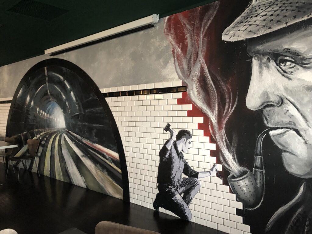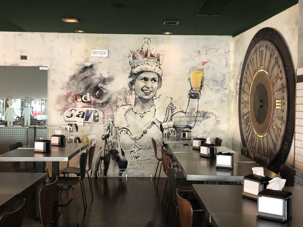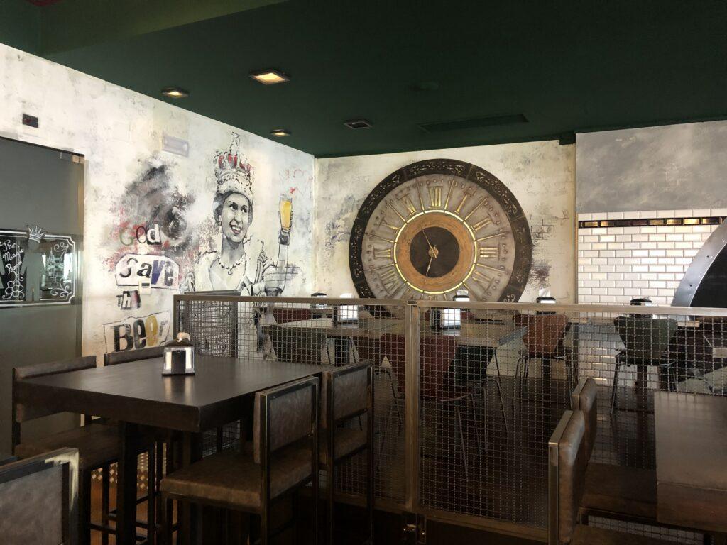 Arte Zeta Studio ha curato con attenzione i dettagli della decorazione, con un focus sull’armonia cromatica, l’equilibrio e la proporzione. Un esempio di questa dedizione è il murale che unisce le bandiere italiana e inglese, creando un collegamento visivo tra cultura locale e internazionale. L’effetto del “muro vissuto” conferisce all’ambiente un tocco vintage, mentre l’aggiunta di pezzi unici, come l’orologio vintage ispirato al Big Ben, dona un tocco di originalità e funzionalità. Il risultato è un locale che, grazie alla collaborazione tra Must Pub e Arte Zeta Studio, riesce a raccontare una storia attraverso ogni elemento decorativo, rendendo ogni visita un’esperienza memorabile.