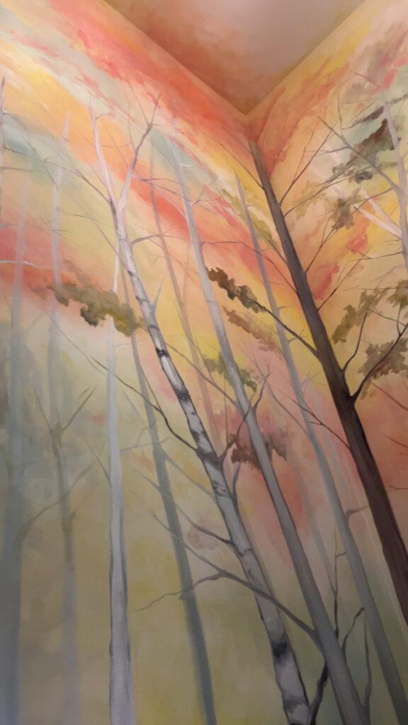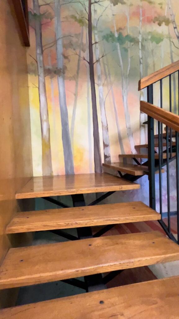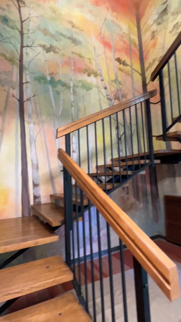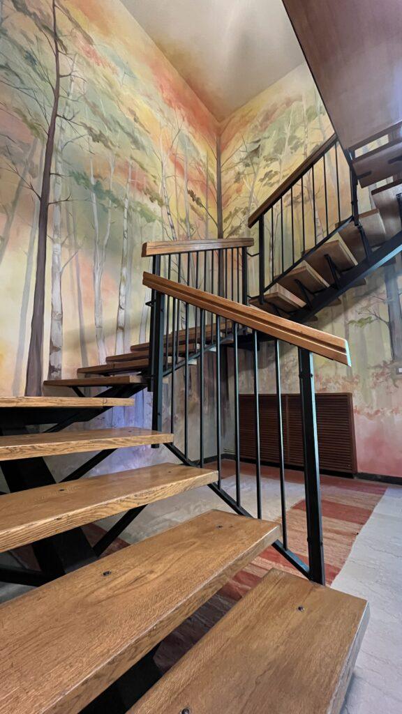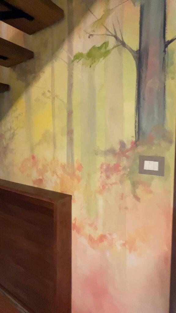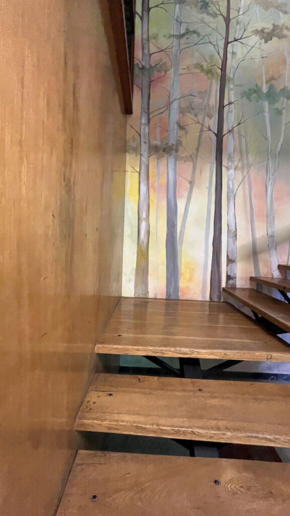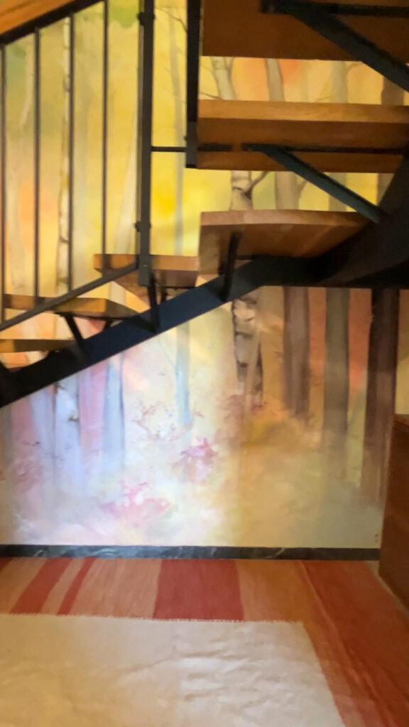 Il vano scala è uno degli spazi più complessi da decorare, soprattutto quando presenta pareti alte e ampie che possono risultare difficili da gestire. In una splendida villa a Monselice, un’ampia scala in legno con pareti molto alte richiedeva un intervento artistico per diventare il punto focale dell’ambiente. La soluzione scelta è stata quella di realizzare un murale verticale ispirato a un bosco, utilizzando uno stile acquerellato e una palette di colori pastello leggeri e luminosi. Questa scelta ha permesso di esaltare l’altezza dello spazio, rendendolo al contempo accogliente ed elegante.