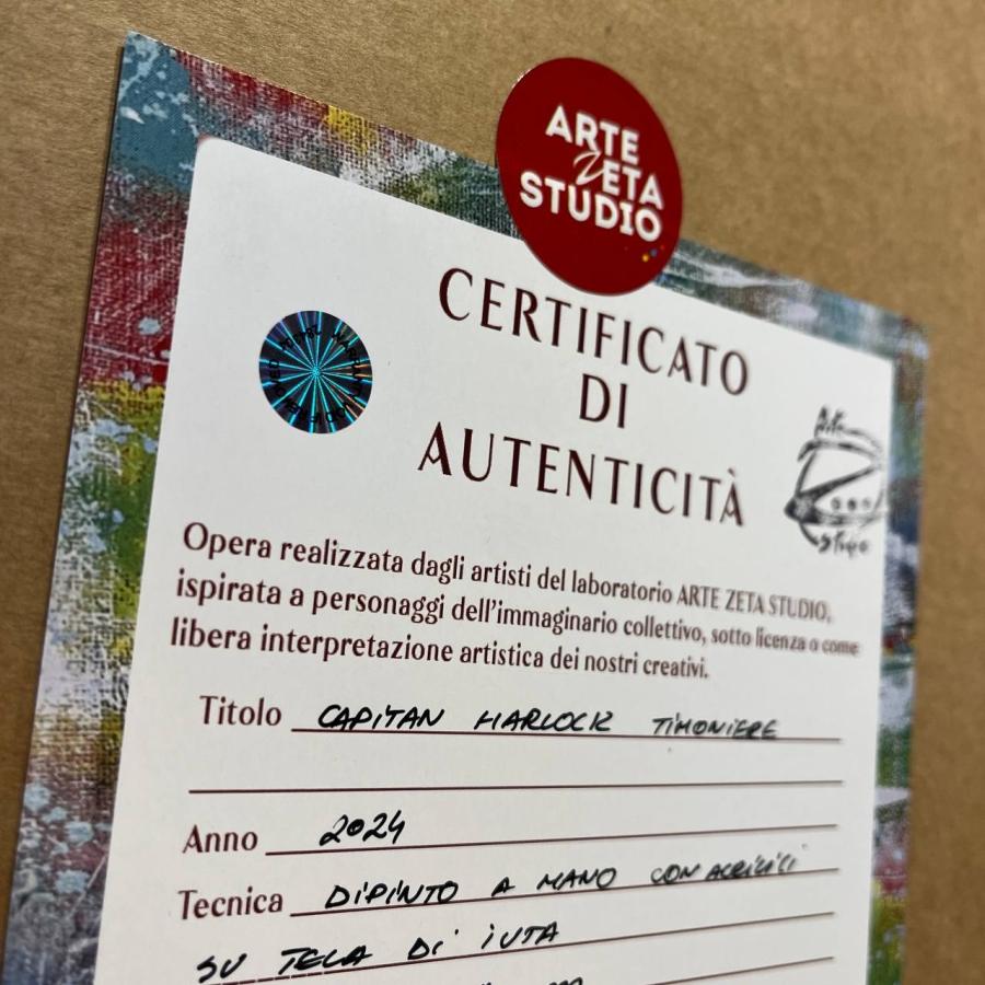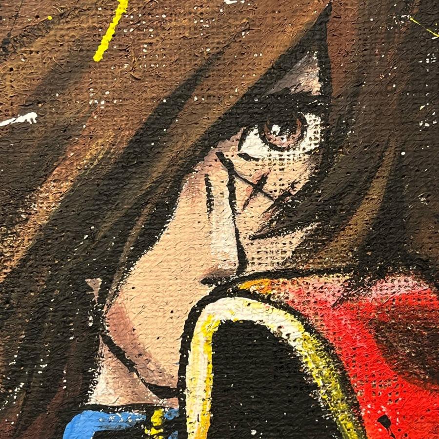 Il quadro di Capitan Harlock ci riporta alle atmosfere di un anime che ha esaltato l’ancestrale figura del pirata. In questo caso la troviamo incarnata dal prototipo dell’eroe romantico che ha rinnegato la società e le sue convenzioni. Harlock, indimenticabile capitano dell’Arcadia, è infatti un uomo severo e taciturno abituato a vivere seguendo solo il suo cuore. Profondamente altruista, è considerato un criminale dagli abitanti della Terra, questo pur essendo l’unico baluardo di difesa contro la minaccia di Mazone.