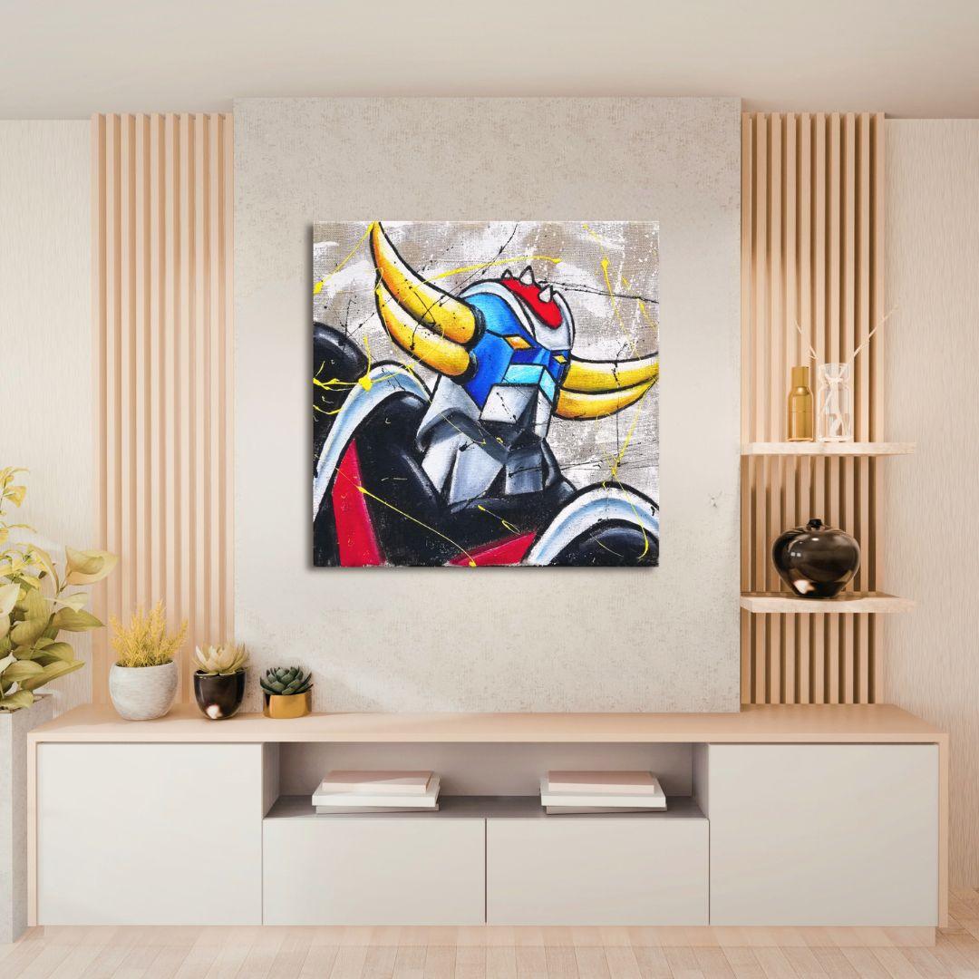 Chi era bambino ai tempi in cui in tv venivano narrate le avventure del Mecha che diventava un disco volante, non può proprio rinunciare a questo bellissimo dipinto. I colori e il tratto sono stati scelti accuratamente per essere conformi all’originale e risvegliare quel lato nostalgico che ci riporta a momenti spensierati. Tutte le nostre opere sono realizzate artigianalmente e possono essere personalizzate su richiesta, sia nelle dimensioni che nei dettagli pittorici. Contattaci per creare un quadro su misura per te.