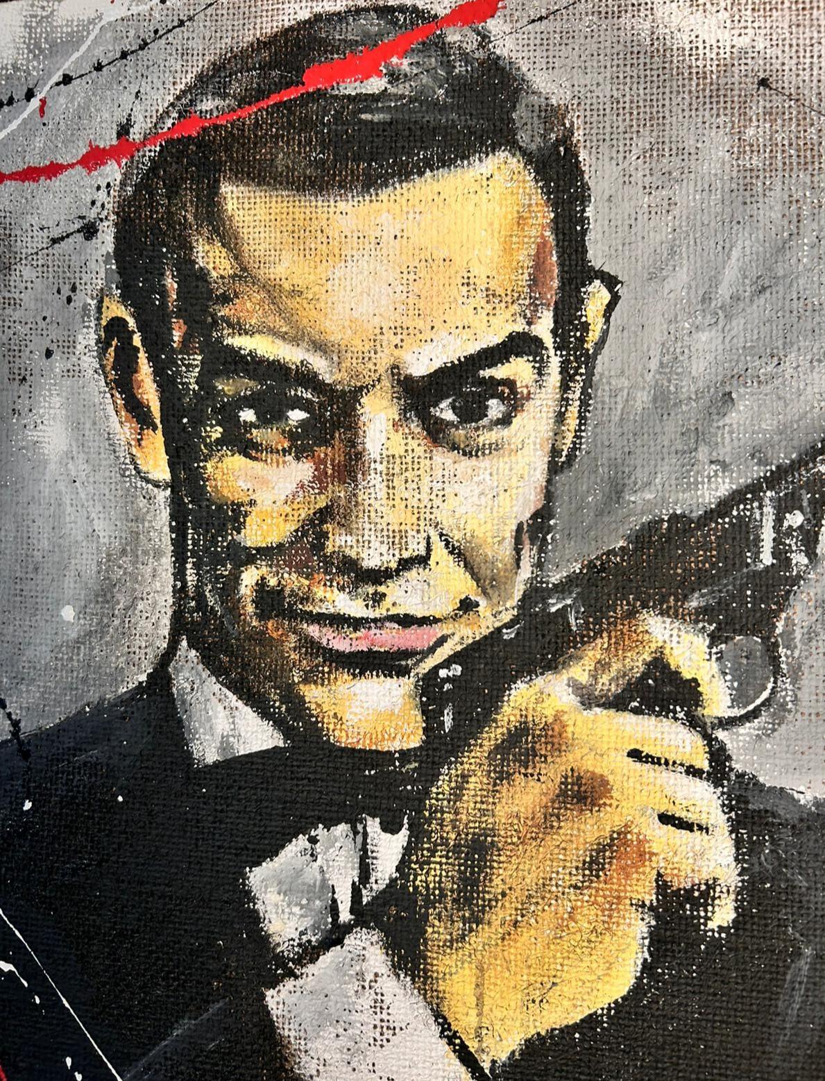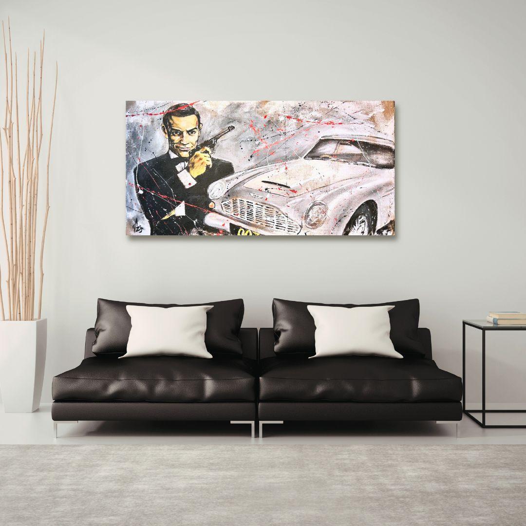 DESCRIZIONE: Questo quadro rende omaggio all’eleganza senza tempo di James Bond, icona del cinema mondiale, raffigurato insieme alla sua inconfondibile automobile. La composizione è un omaggio al personaggio, al suo carisma e al suo fascino intramontabile, fondendo immaginario cinematografico e linguaggio artistico contemporaneo.L’opera è realizzata interamente a mano nel nostro laboratorio Arte Zeta Studio, utilizzando tela di juta per valorizzare la matericità e donare profondità visiva al soggetto. La tela è intelaiata artigianalmente su un solido telaio in legno da 3×3 cm, rinforzato con un supporto interno in cartone, studiato per garantire stabilità, durata nel tempo e una resa strutturale di alta qualità.