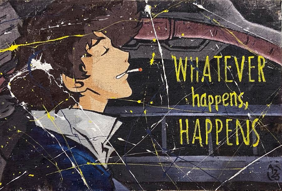 Questo bellissimo dipinto è un omaggio a questa brillante serie animata, che ricordiamo non ha niente a che fare con quella cosa tremenda uscita recentemente su Netflix in forma di live action. Il quadro ritrae Spike intento a rilassarsi con la sua immancabile sigaretta e una scritta che i fan più attenti riconosceranno sicuramente.