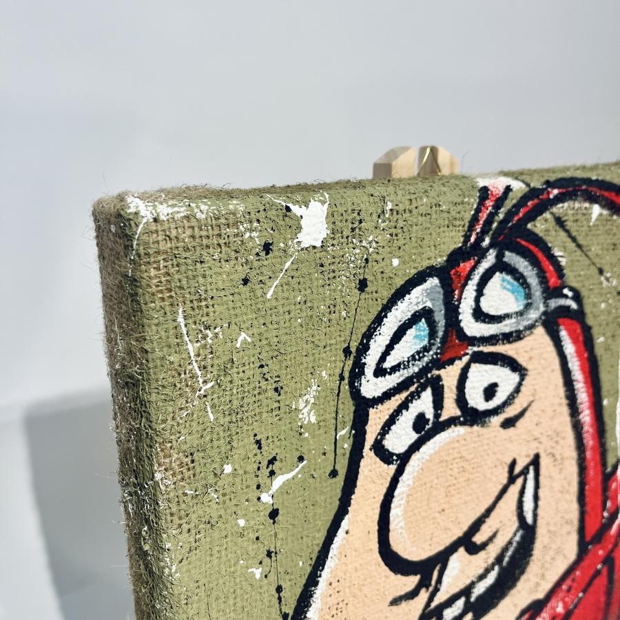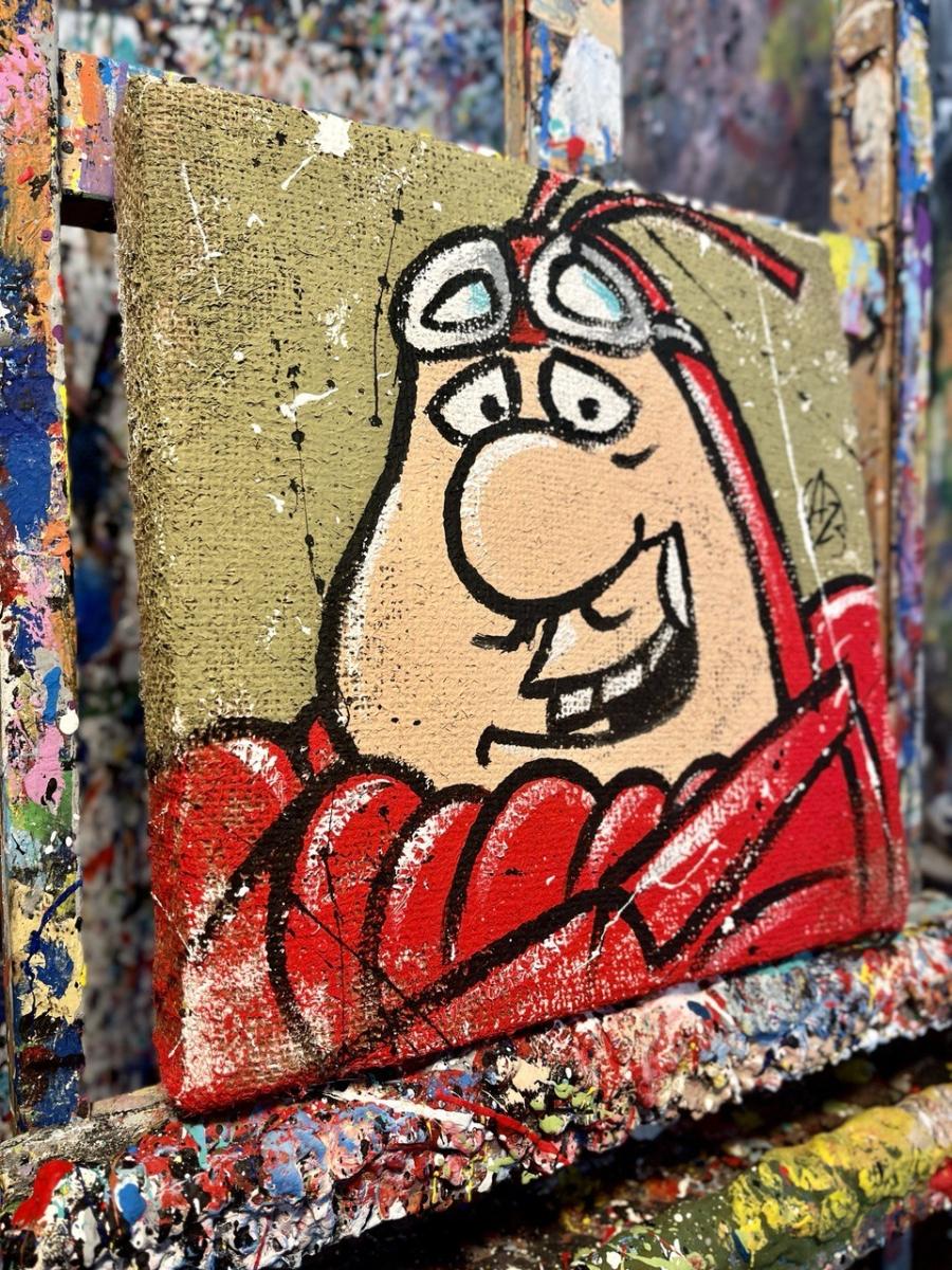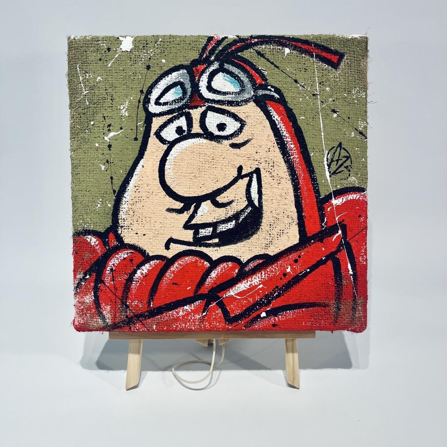 Il quadro qui proposto è parte di una seria dedicata a tutti i piloti più famosi di Wacky Races (titolo originale del cartone targato Hanna e Barbera), e può quindi essere un oggettino da collezionisti di grande valore. Realizzato su tela di juta interamente a mano, arriva già montato su un comodo supporto in legno, pertanto non necessita di alcuna cornice!