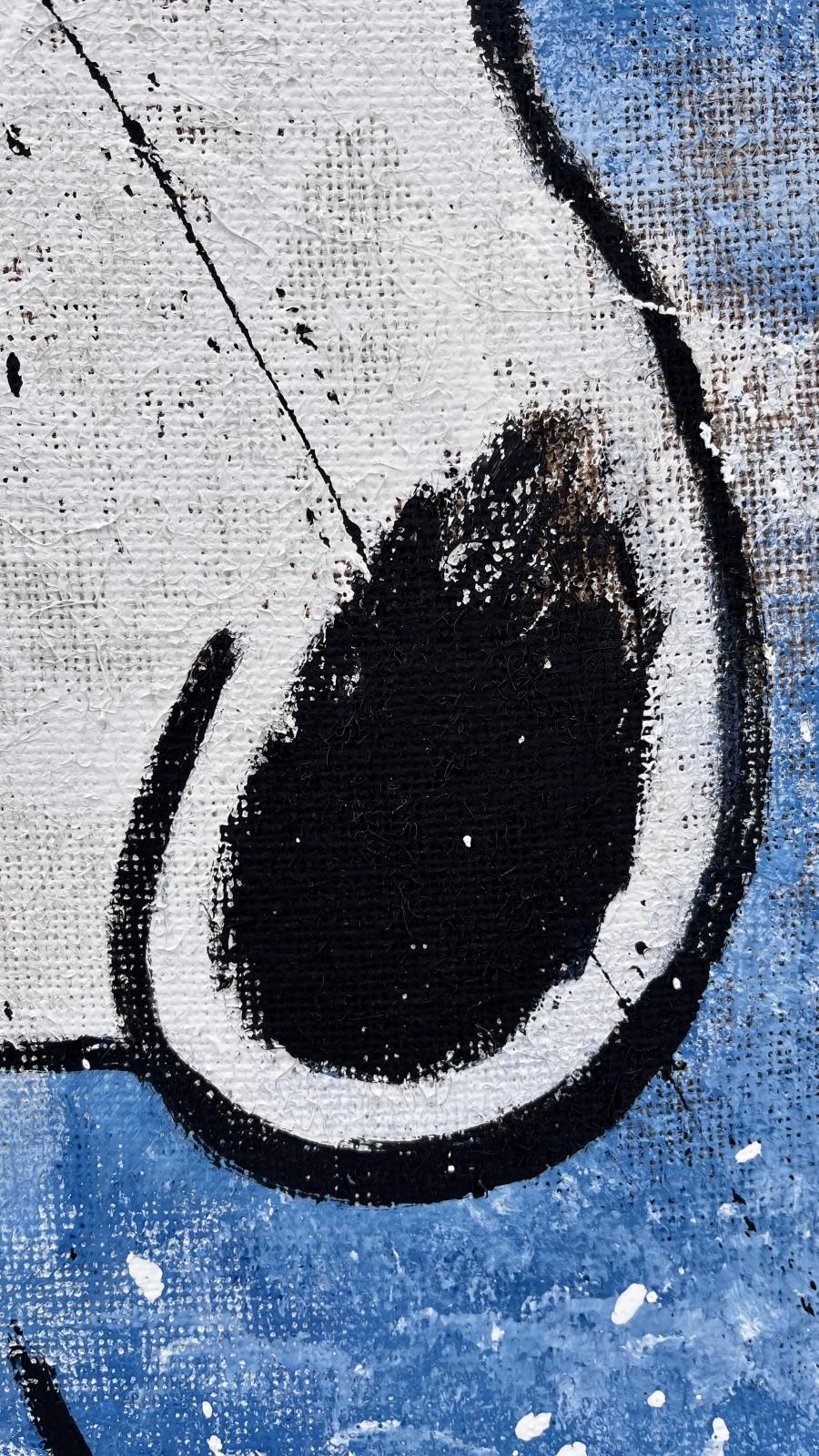 Questo dipinto rappresenta un tenere abbraccio tra Snoopy e il suo amico Woodstock. Il cagnolino più amato dei fumetti è considerato una vera e propria icona pop, poiché ha fatto parte dei dirai scolastici di moltissimi di noi. Il franchise si è espanso rapidamente e ancora oggi sono migliaia gli oggetti che sfruttano l’immagine del simpatico esserino.