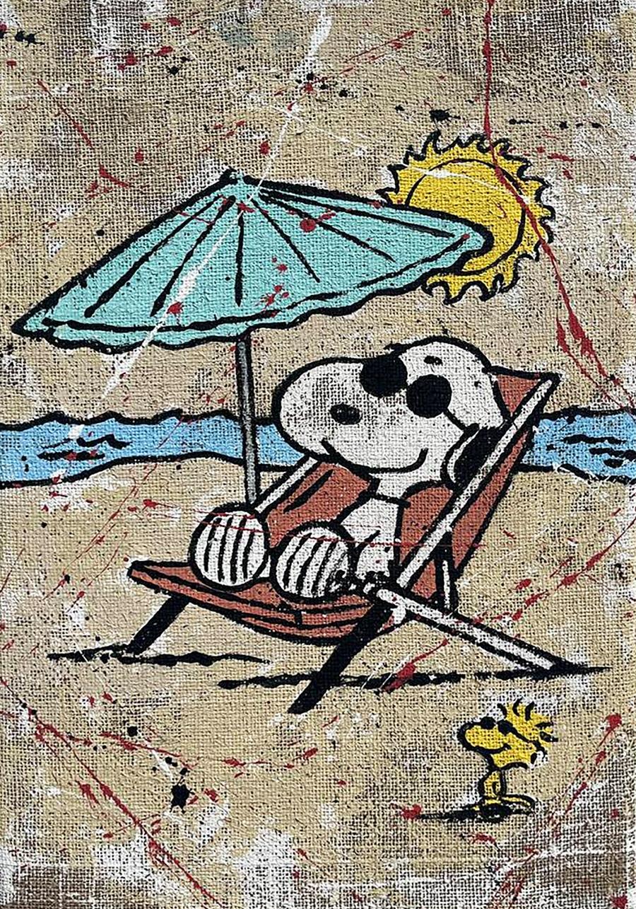 Il caldo estivo è insopportabile? Prendi esempio dal buon Snoopy e rilassati sulla spiaggia sotto un ombrellone! Se tuttavia non lo puoi proprio fare, allora accontentanti di immergerti in questo bellissimo quadro che ritrae il compagno animale di Charlie Brown intento a godersi la brezza marina in totale relax!