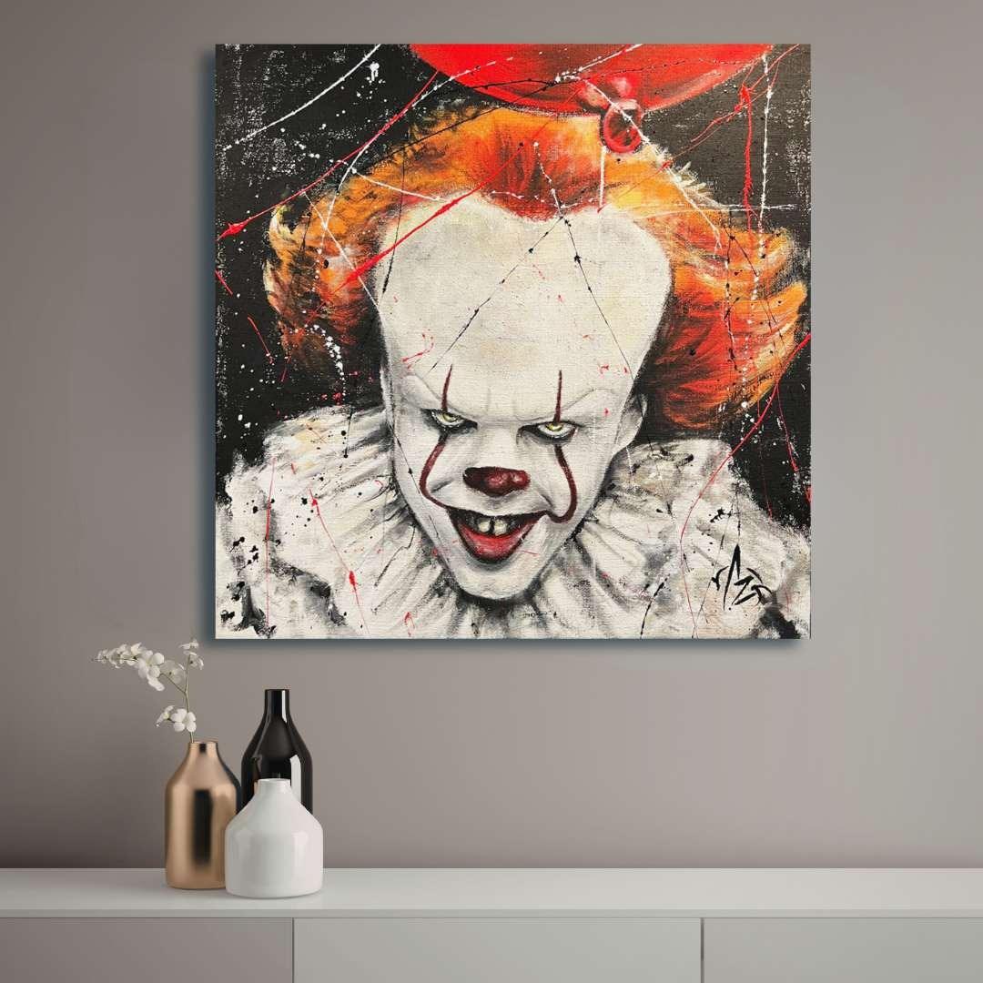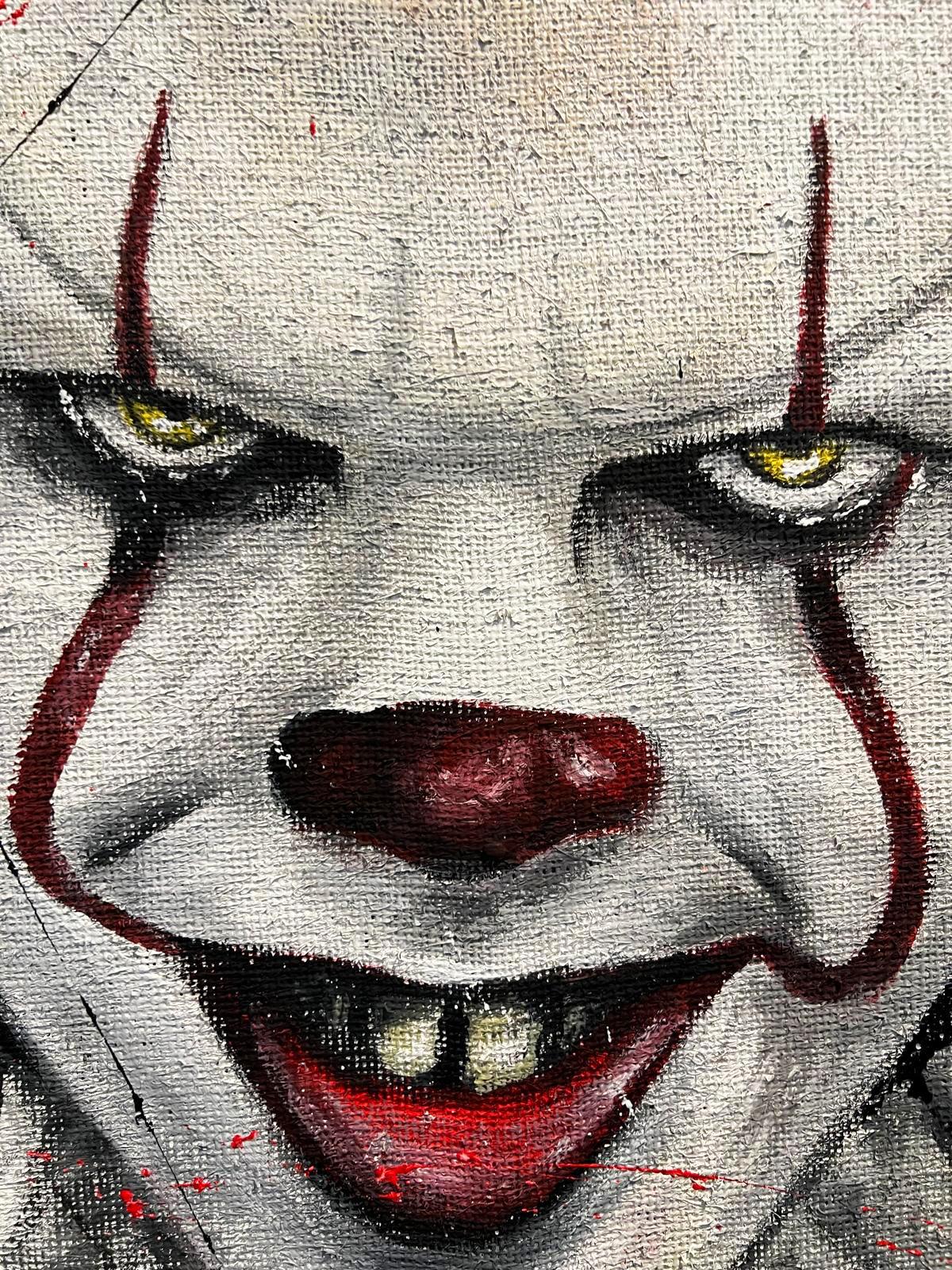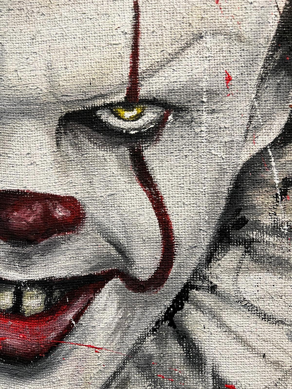 DESCRIZIONE: Questo quadro raffigura un intenso primo piano di IT, icona assoluta dell’immaginario horror contemporaneo, reinterpretato dallo stile inconfondibile di Arte Zeta Studio. Lo sguardo magnetico e il sorriso inquietante emergono dalla superficie con forza espressiva, catturando immediatamente l’attenzione dell’osservatore e trasformando il soggetto in una presenza potente e disturbante.L’opera è realizzata a mano su tela di juta, un materiale materico e naturale che conferisce profondità, texture e carattere al dipinto. La tela è intelaiata artigianalmente su un robusto telaio in legno 3×3 cm e rinforzata internamente con un supporto in cartone, per garantire stabilità, durata nel tempo e qualità professionale.