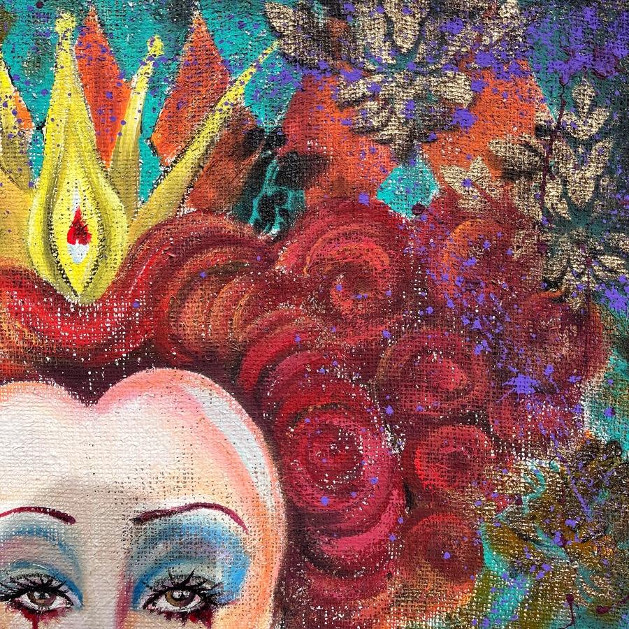 Un incredibile dipinto dedicato alla Regina di Cuori da Alice in Wonderland. Il personaggio è stato interpretato dall’inarrivabile Helena Bonham Carter e ha suscitato ilarità, timore e odio un po’ in tutti noi. Rimane però uno dei cattivi meglio caratterizzati della storia del cinema, tanto da meritarsi questo splendido quadro in stile liberty.
